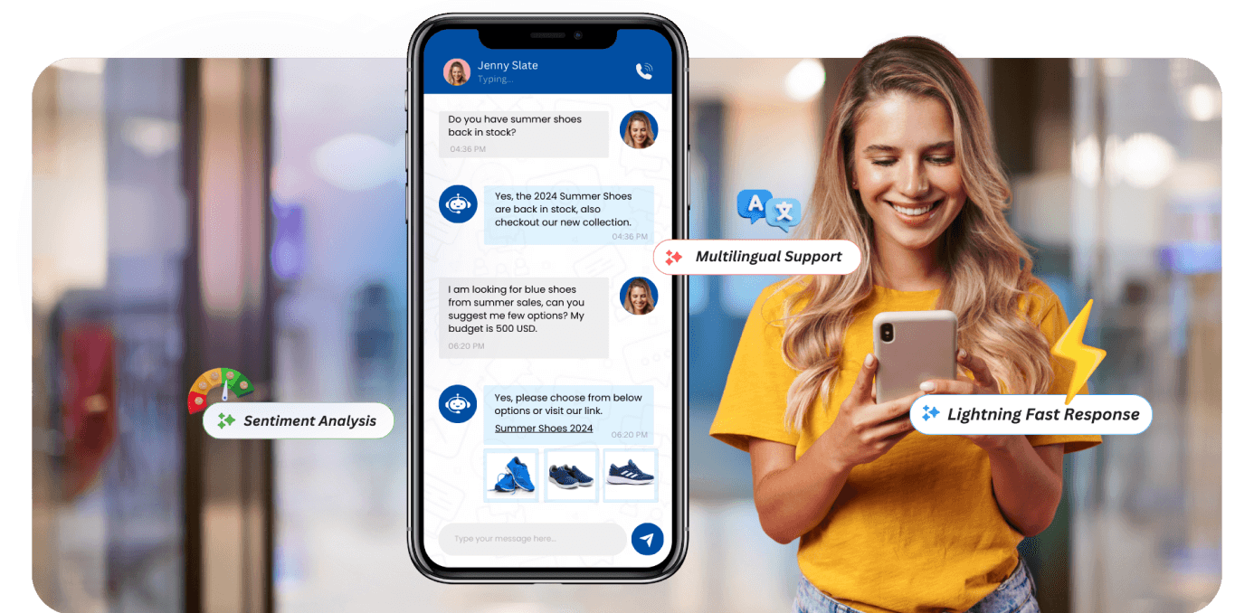 Qualify leads, set up meetings, and scale your interactions. Solve all customer inquiries instantly, averaging just 5 seconds, using your data and human-like language.